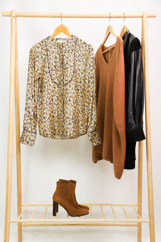 Chemise fleurie sur fond noir, fils brillants - Vanessa Bruno Taille XL