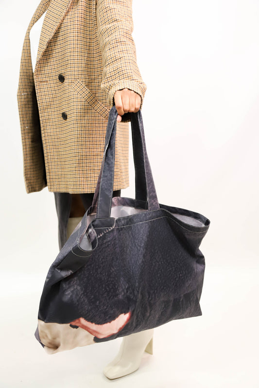 Cabas en bâche de vitrine upcyclée gris, Fringuette La Ligne
