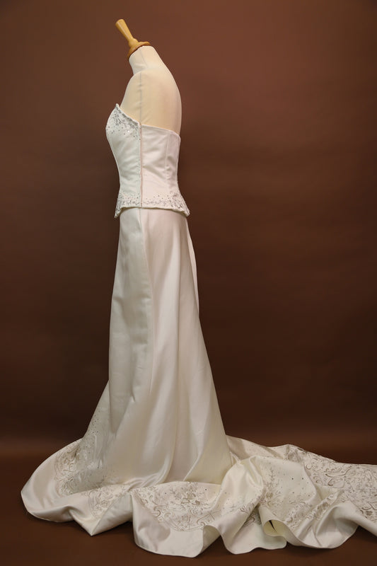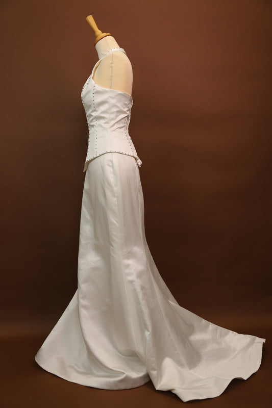 Ensemble mariage blanc : bustier, jupe avec traine et gants Taille XS