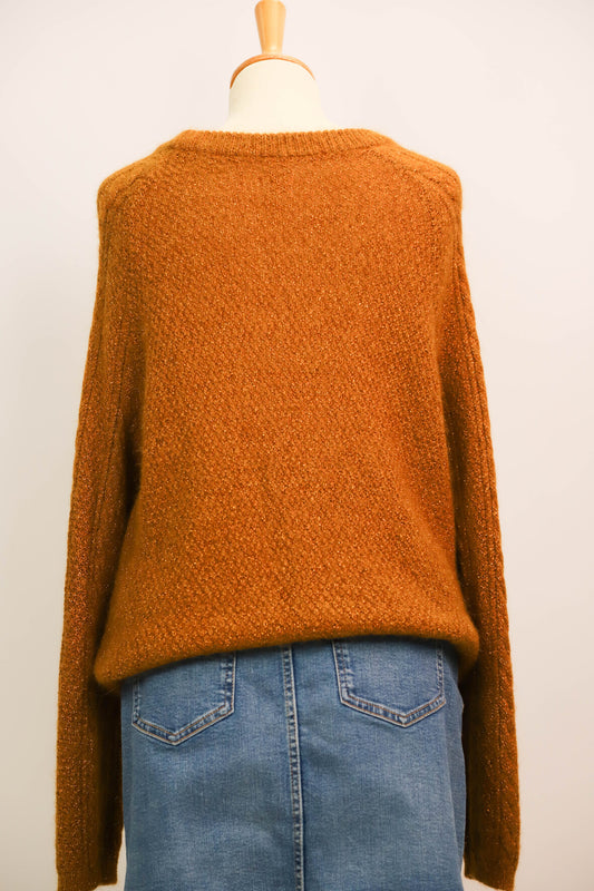 Pull jaune doré à col rond, maille torsadée fils dorés DPH Taille L