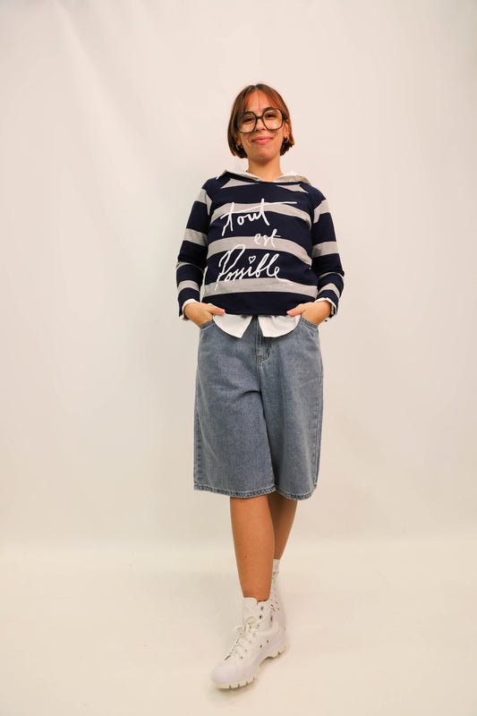 Sweat fin bleu et gris A bicyclette Taille S - NEUF