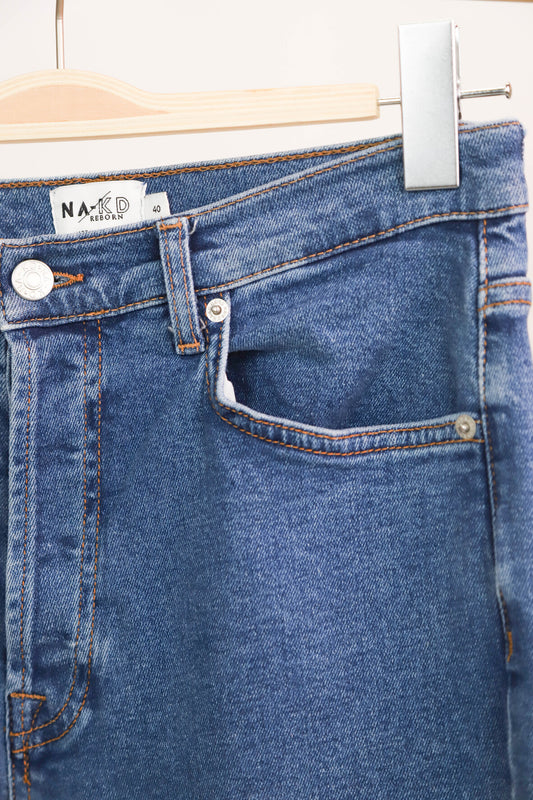Pantalon bleu taille haute coupe large Na-Kd Taille L - 40