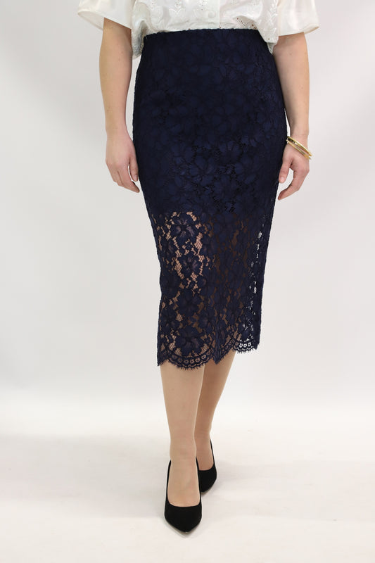 Jupe droite en dentelles bleu marine Sandro Taille S - NEUF