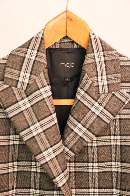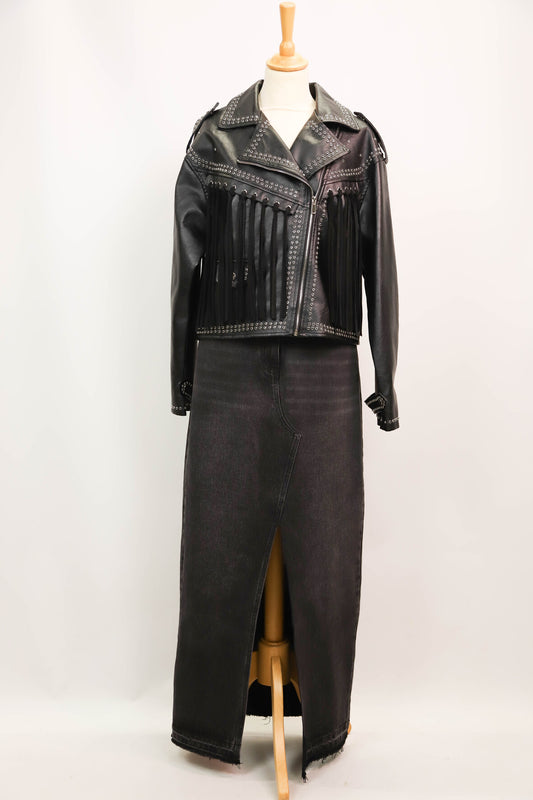 Veste marron en cuir, effet zébré en relief, clous dorés - Mieles Jomo Taille M