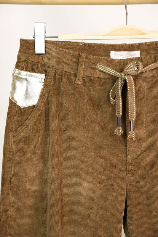 Pantalon marron en velours, lacet à nouer à la ceinture, Maison Onado Taille XXL - NEUF