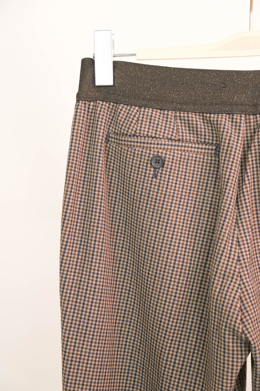 Pantalon marron à petits carreaux bleus, taille élastique MKT Taille M