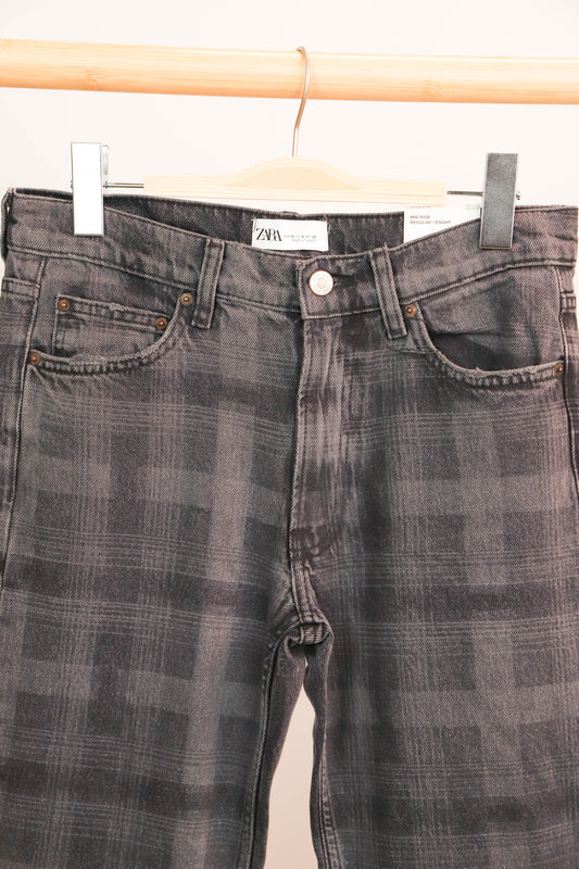 Jean gris coupe droite à motifs carreaux ZARA Taille S - NEUF