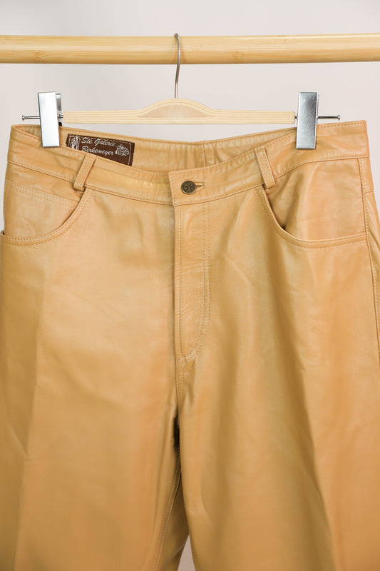Pantalon camel en cuir véritable, doublure intérieure - Galerie Birkemeyer Taille XL /42