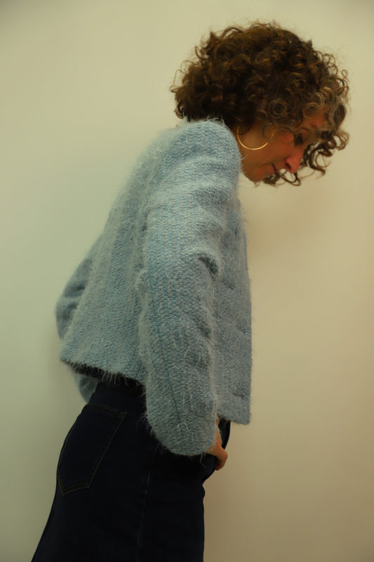Veste en tweed, bleu ciel Mango Taille XS - NEUF