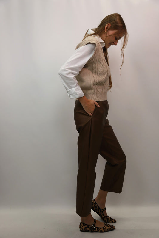 Pantalon souple simili cuir marron, Charming Girl, Taille S