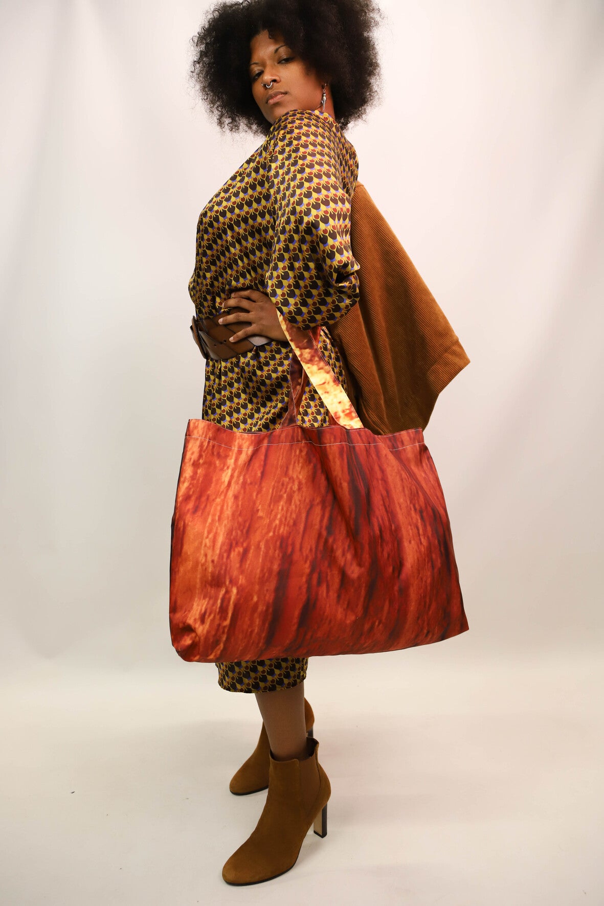 DESCRIPTIF | Cabas avec motif abstrait camaïeu de couleurs |