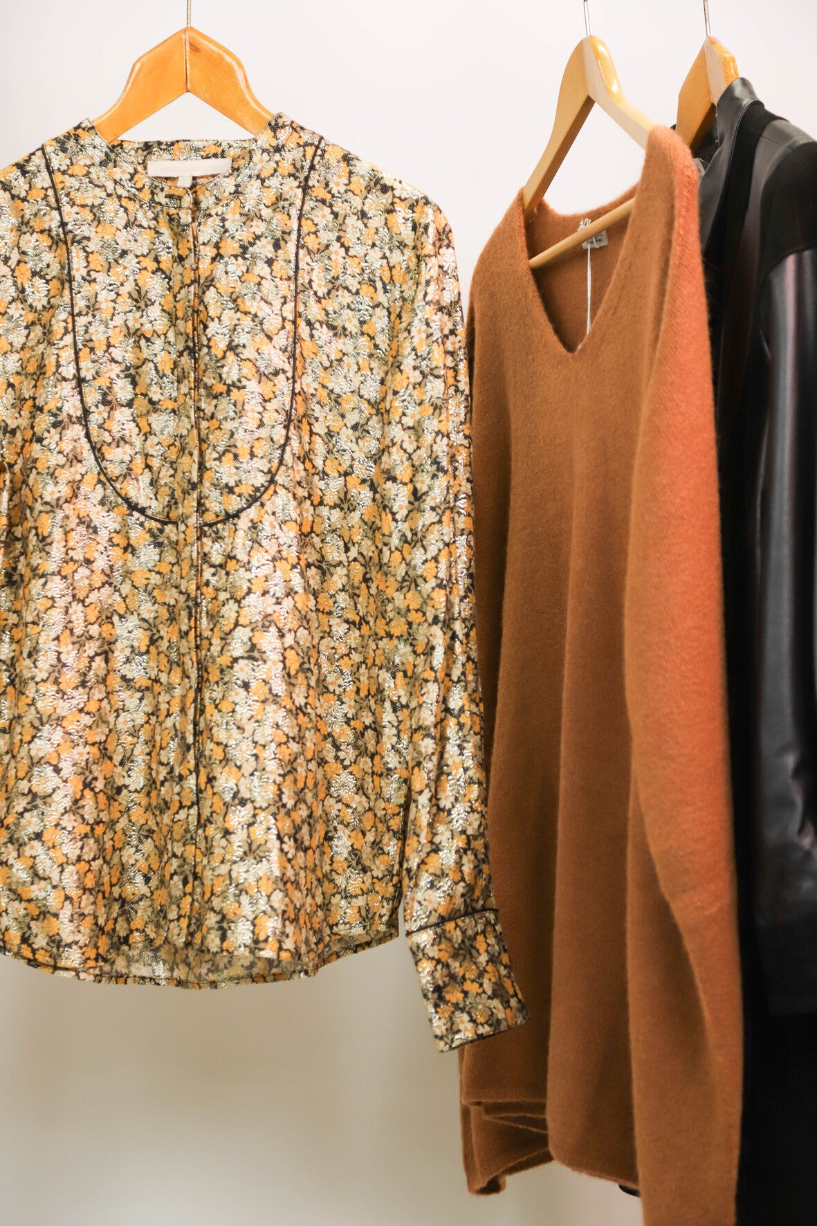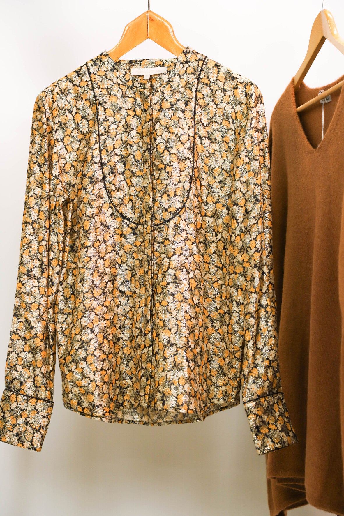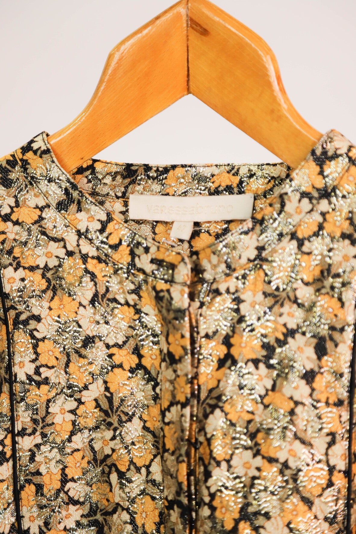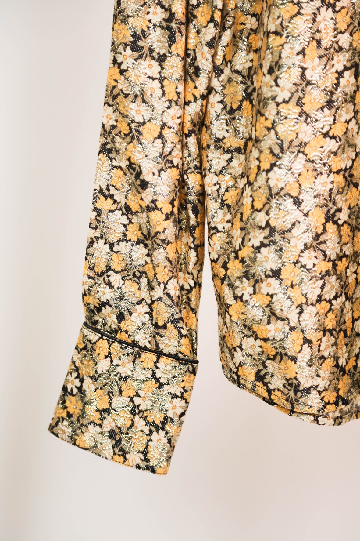 Chemise fleurie sur fond noir, fils brillants - Vanessa Bruno Taille XL
