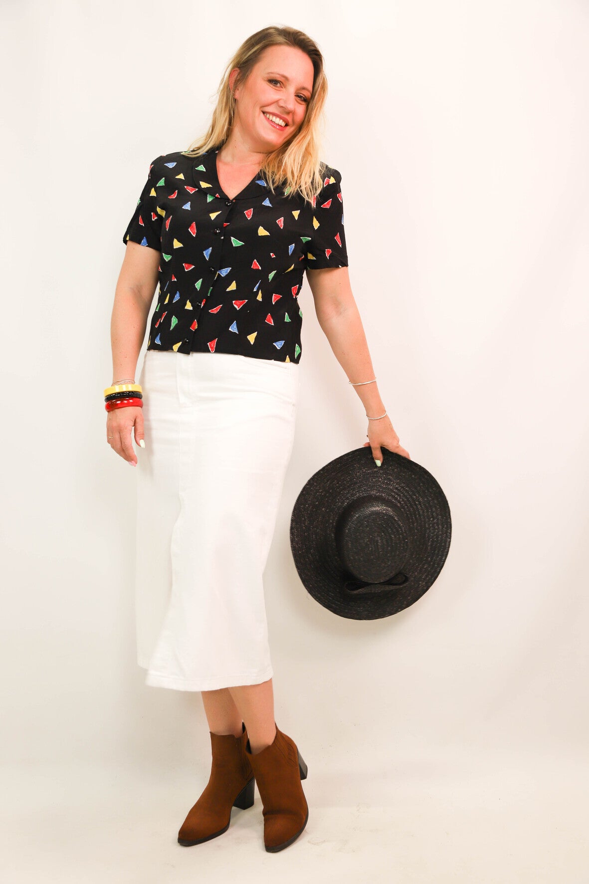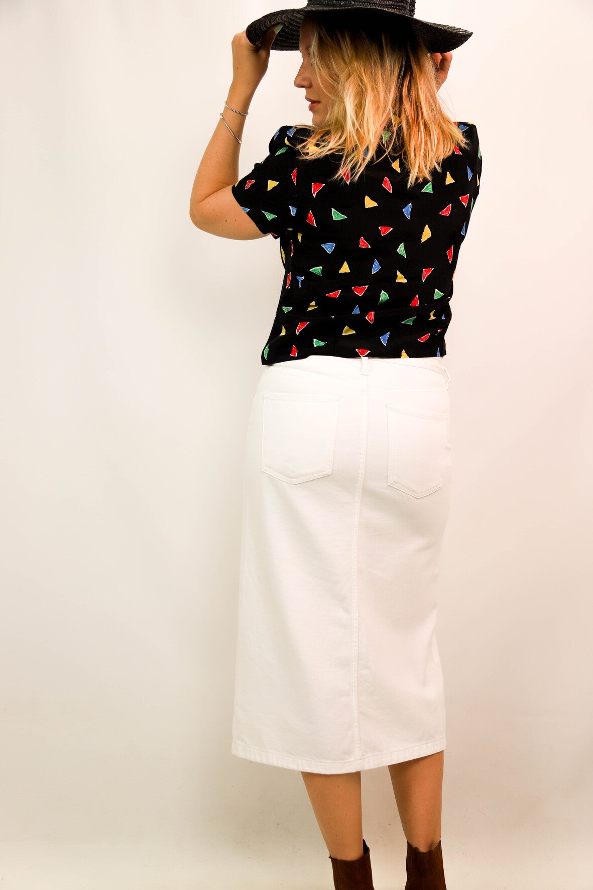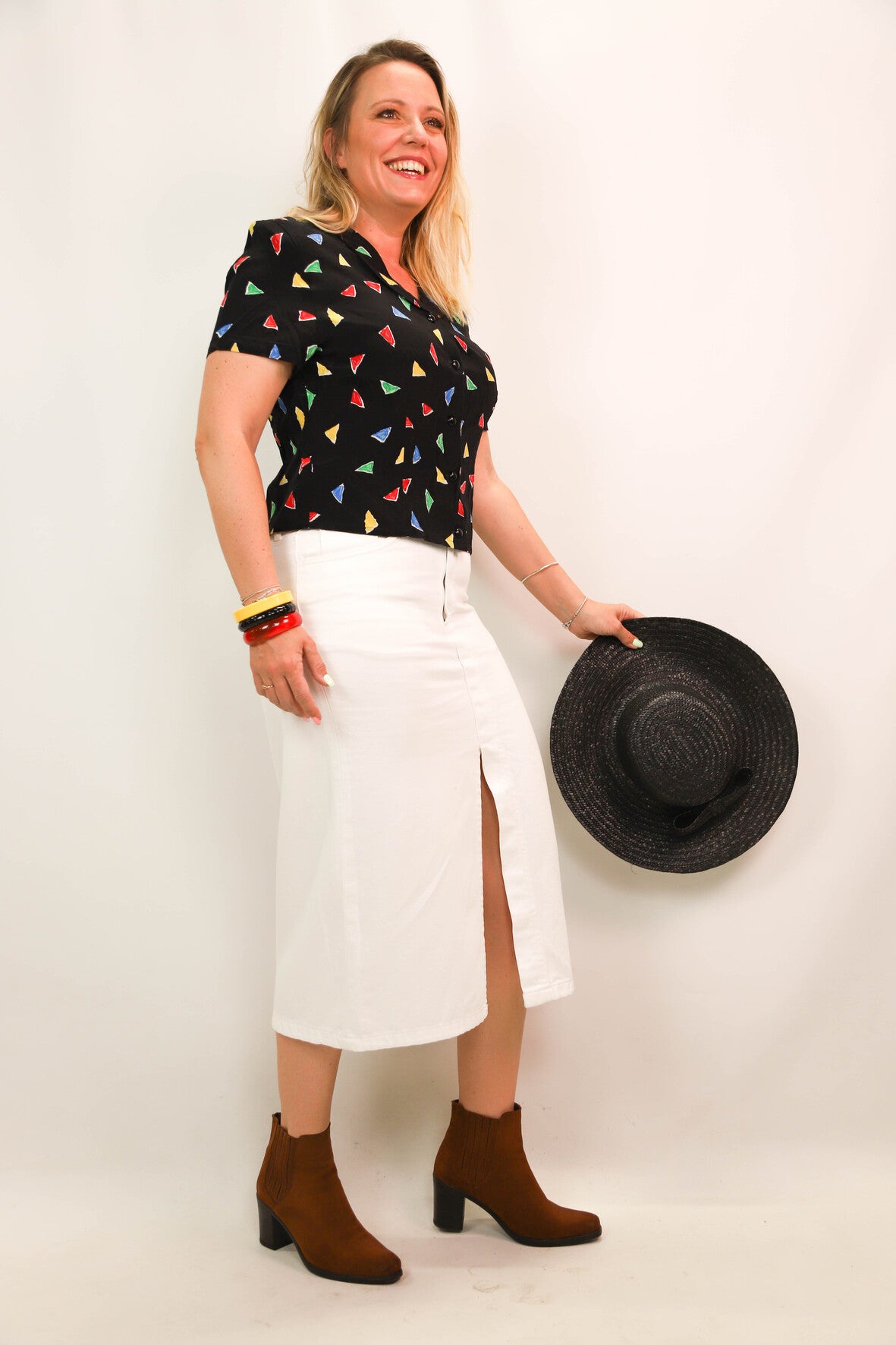 DESCRIPTIF | Jupe fendue à l'avant, longueur mollet |