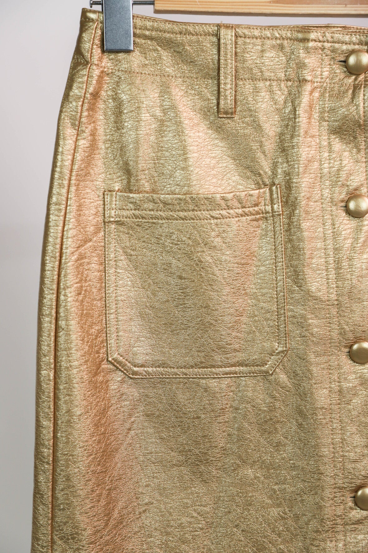 Jupe avec doublure et fermeture par boutons sur l'avant. Deux poches plaquées à l'avant et à l'arrière. Passants pour ceinture