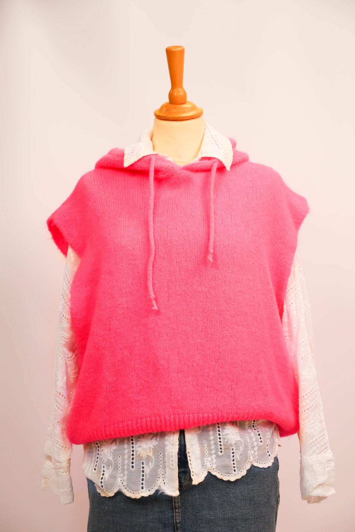 DESCRIPTIF | Pull sans manches avec capuche |