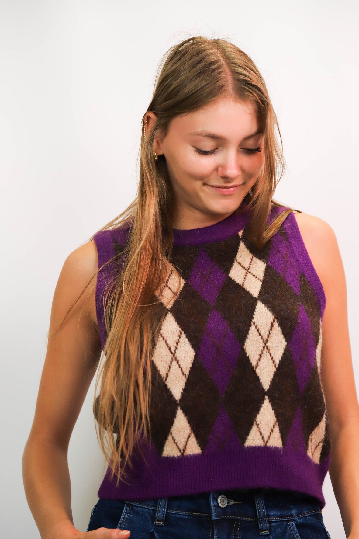 DESCRIPTIF | Pull sans manches motif argyle |