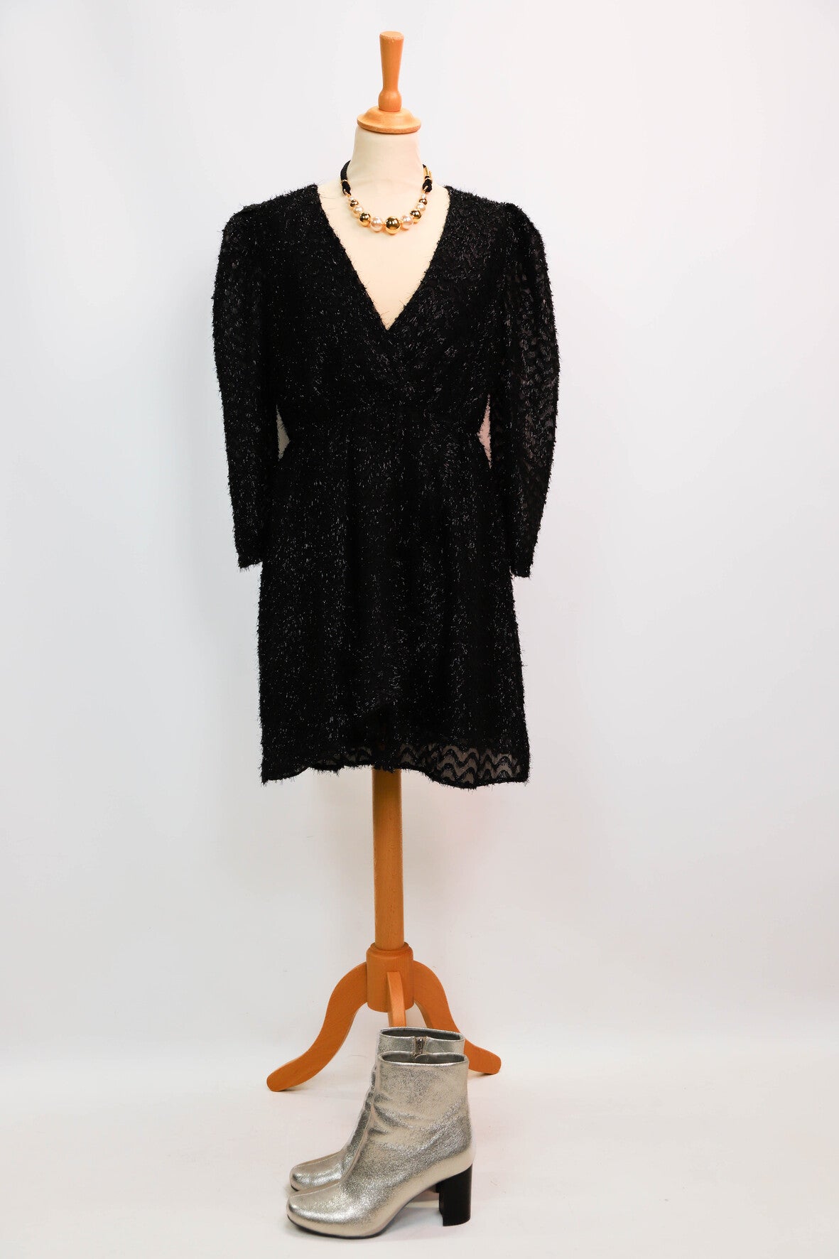 | DESCRIPTIF | Robe doublée avec élastique à la taille. Motif en relief avec fils pailletés |