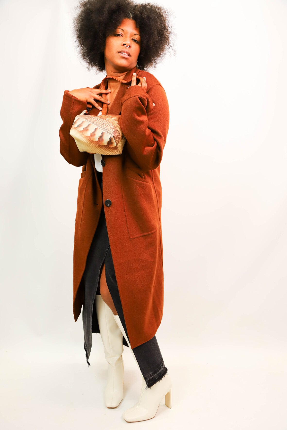 Sac pochette en bâche de vitrine upcyclée marron, Fringuette La Ligne