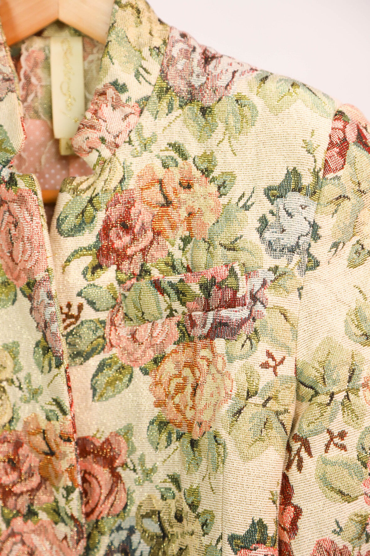 DESCRIPTIF | Veste fleurie irisé avec fils dorés |